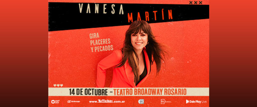 La cantante y compositora española pop Vanesa Martín arriba a la ciudad en el marco de su gira “Placeres y Pecados”. Será con un show en vivo en el escenario del Teatro Broadway. La malagueña ofrecerá un espectáculo único con nueva escenografía y un repertorio en el que no faltaran sus éxitos.