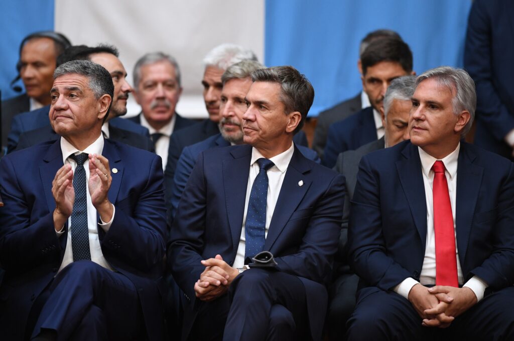 El acto, que fue puro fervor de los oficialistas –y de los invitados que coparon los balcones–, contó con la presencia de la Corte Suprema en pleno y cerca de una decena de gobernadores, entre ellos, los más visibles, el santafesino Maximiliano Pullaro, el jefe de Gobierno porteño Jorge Macri, el cordobés Martín Llaryora y el entrerriano Rogelio Frigerio.